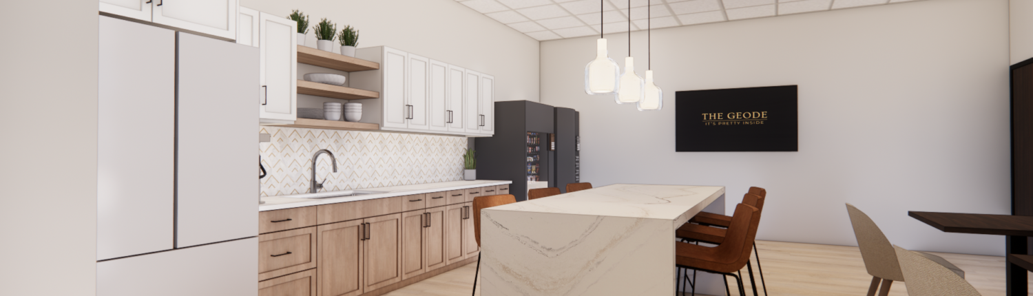 Much like the surprise you get when you crack open a geode, you will find The Geode really isn’t boring. Whether it’s the ability to get natural light in every room, enter the best gym we could build, work on your golf game in a way that every team member can enjoy, or look brilliant when you talk to finance about how much the space costs.